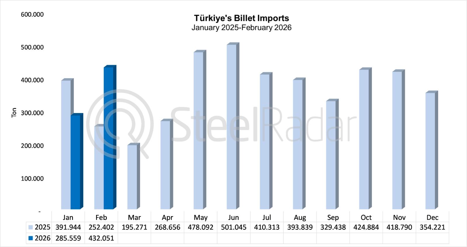 Türkiye’s billet imports increased by 71.2% in February