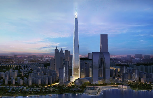 4.2 milyar dolar harcanarak inşa edilen 121 katlı, 9 farklı dikey bölgeden oluşan kulenin dış kısmı doğal havalandırma sağlayan camlarla kaplanmıştır.