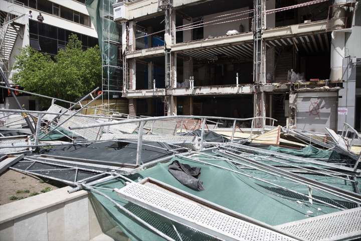 Ankara'nın Çankaya ilçesinde inşaat iskelesinin çökmesi nedeniyle...