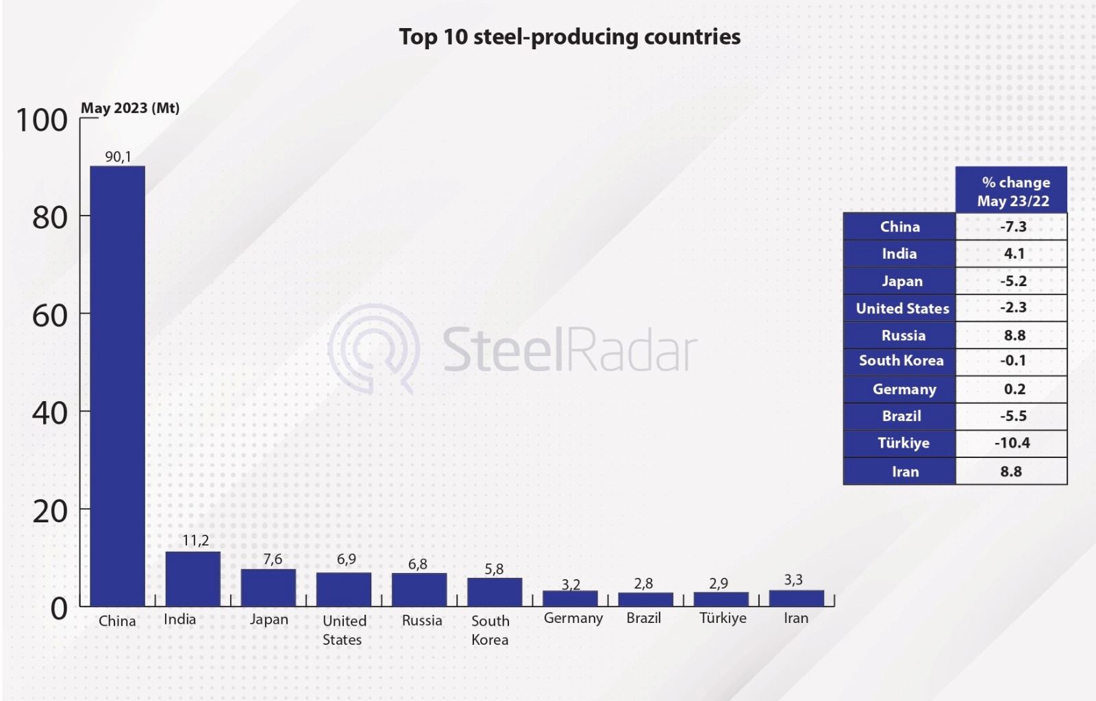 In the first 5 months of the year, global crude steel production decreased by 1.2 percent to 786.0 million tons, while Turkey's production decreased by 19.1 percent to 13.0 million tons.