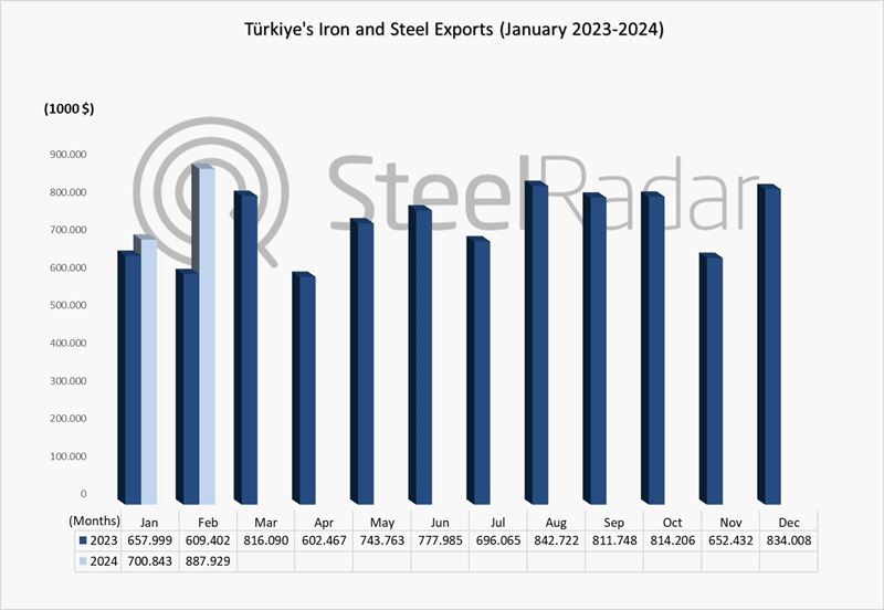 Türkiye's steel exports reached $887.9 million in February