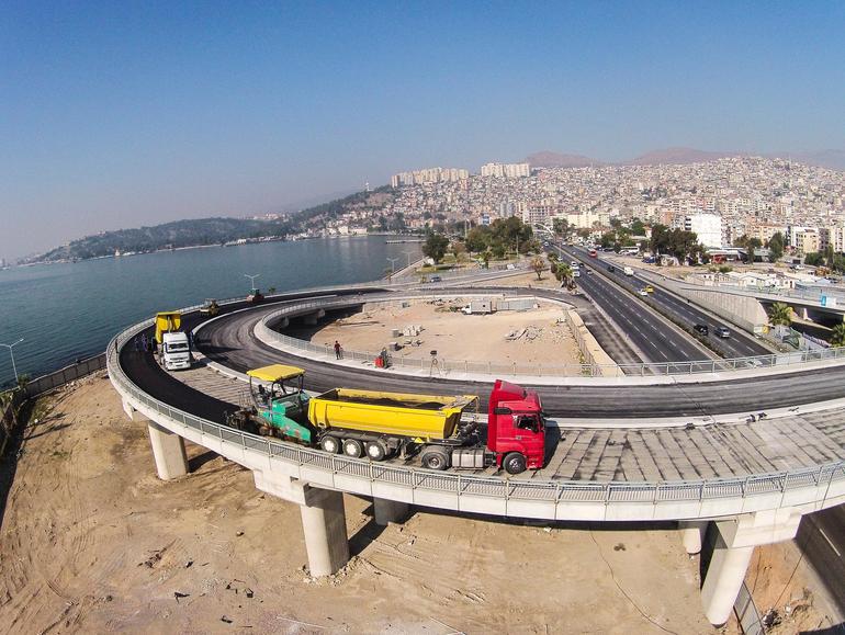 İzmir Büyükşehir Belediyesi, asfalt çalışmalarına başladığı Adnan Kahveci Köprülü Kavşağı’nı proje bitim tarihinden 3 ay daha önce hizmete açacak. Bayraklı ve Bornova ilçelerinin Altınyol’a direkt bağlantısını sağlayacak kavşağın yıl sonunda hizmete alınması planlanıyor.