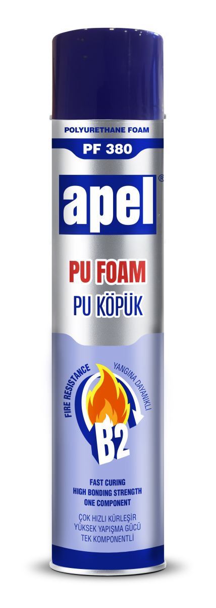 Otel, hastane, okul, kampüs vb. hizmet binalarının kapı, pencere ve yangın çıkış kapılarının montajında kullanılabilen APEL PF380, olası bir yanma esnasında kendiliğinden sönebiliyor. APEL PF 380 Yangına Dayanımlı PU Köpük, kapılardan pencere kasalarına kadar tüm doğramaların sabitlenmesinde, boşlukların doldurulmasında, elektrik tesisatları, sıcak ve soğuk su borularının izolasyonlarında; boşluk, delik ve çatlakların kapatılmasında kullanılabiliyor.