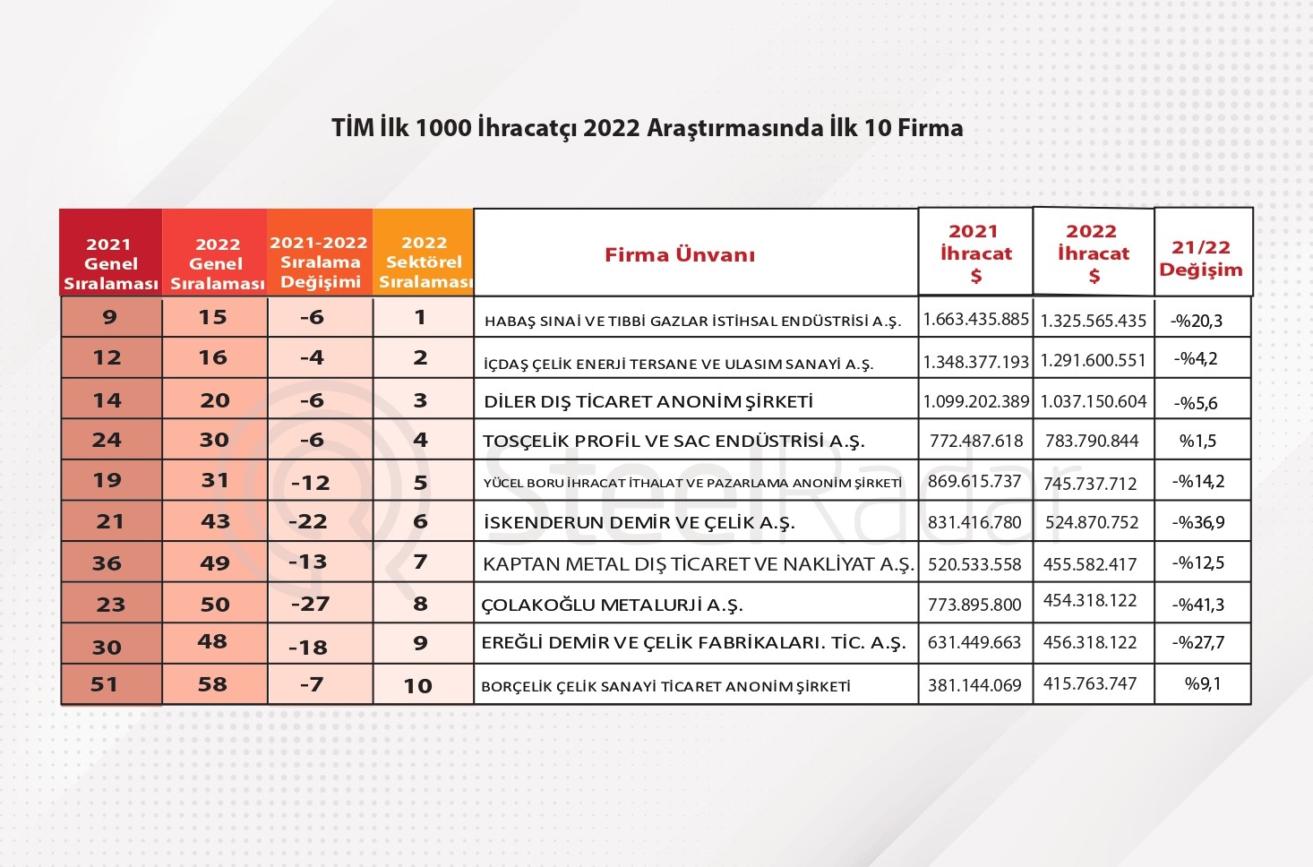 Diler Demir Çelik, 2022 yılında Türkiye'nin en çok ihracat yapan firmaları arasında 20. sırada yer aldı.