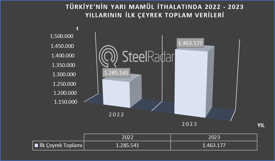 2022 ve 2023 yıllarının ilk çeyreğinde Türkiye’nin yarı mamül ithalatı %13,8 artışla 1 milyon 463 bin tona yükseldi