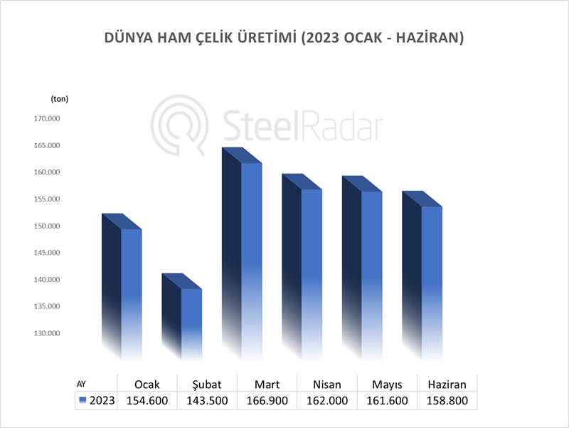 2023 yılının Haziran ayında dünya ham çelik üretimi %1,73 azaldı