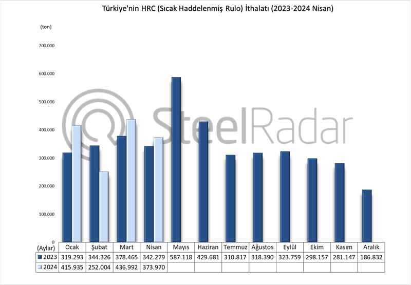 Türkiye’nin HRC ithalatı Ocak-Nisan döneminde %6,8 arttı